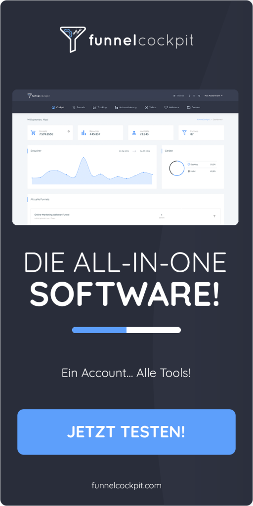 Aber finde es jetzt selbst heraus, in dem du FunnelCockpit 14 Tage lang testest!